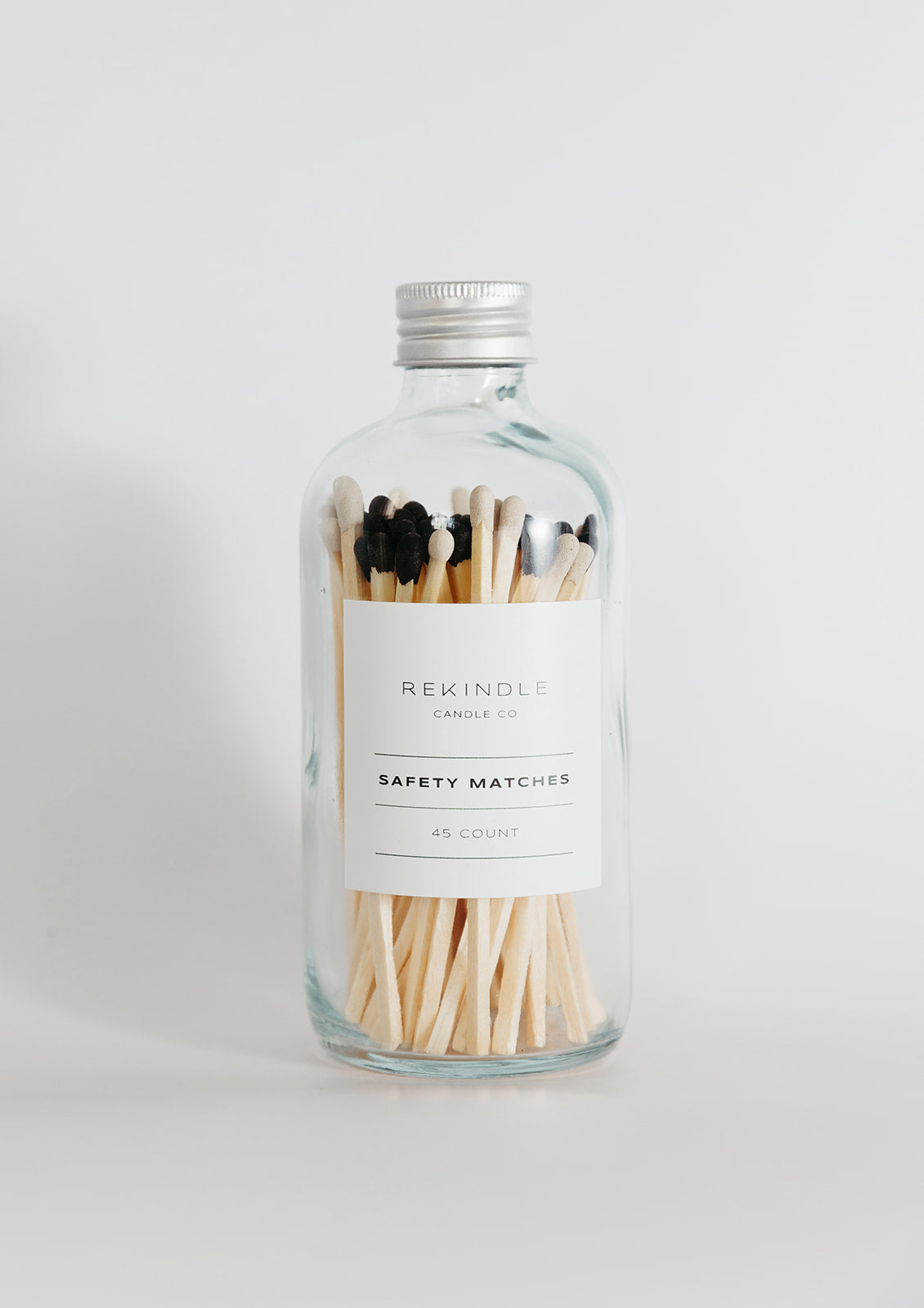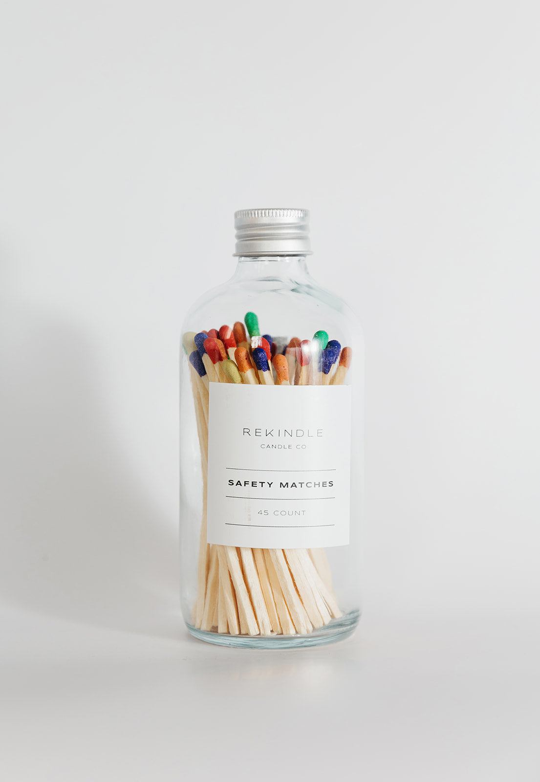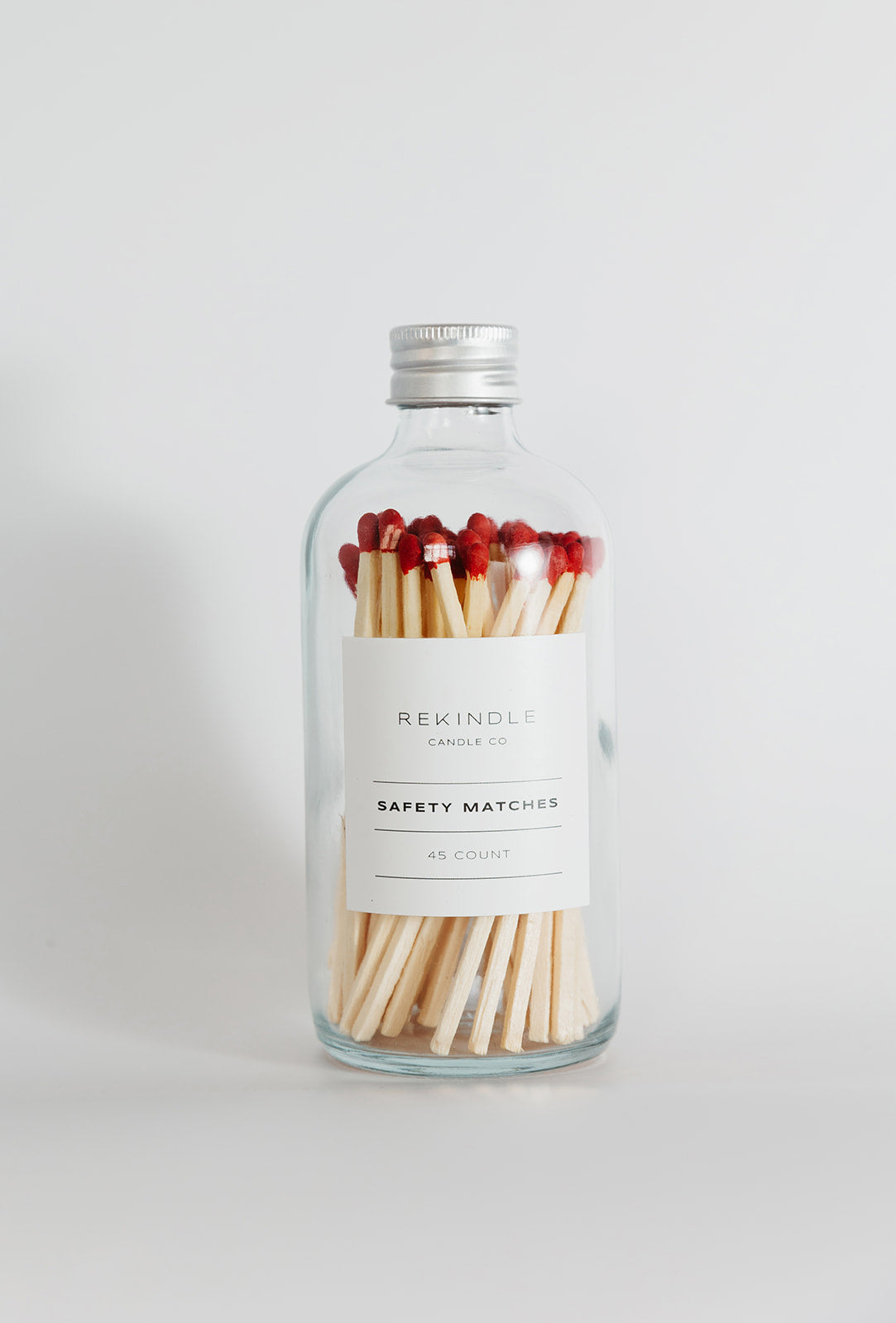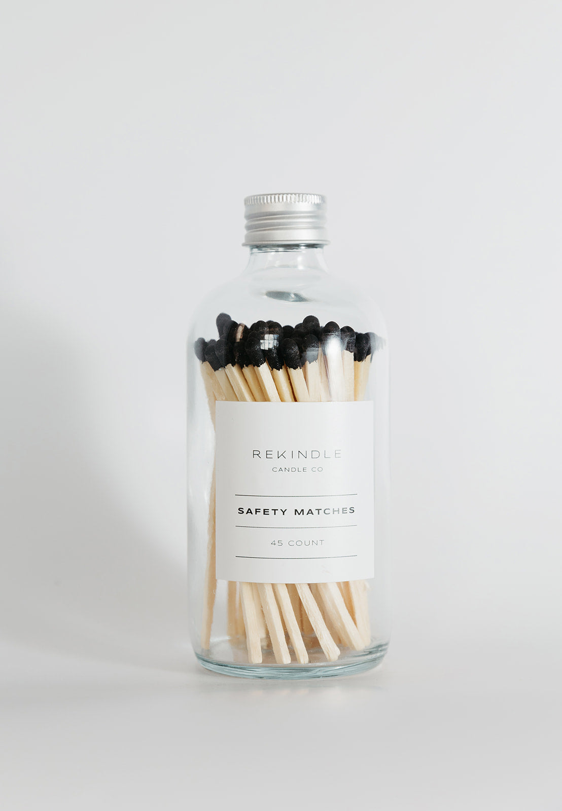 4 in. candle matches in boston round match bottle. Ideal for lighting your Rekindle candle—no matter how far down you’ve burned it!