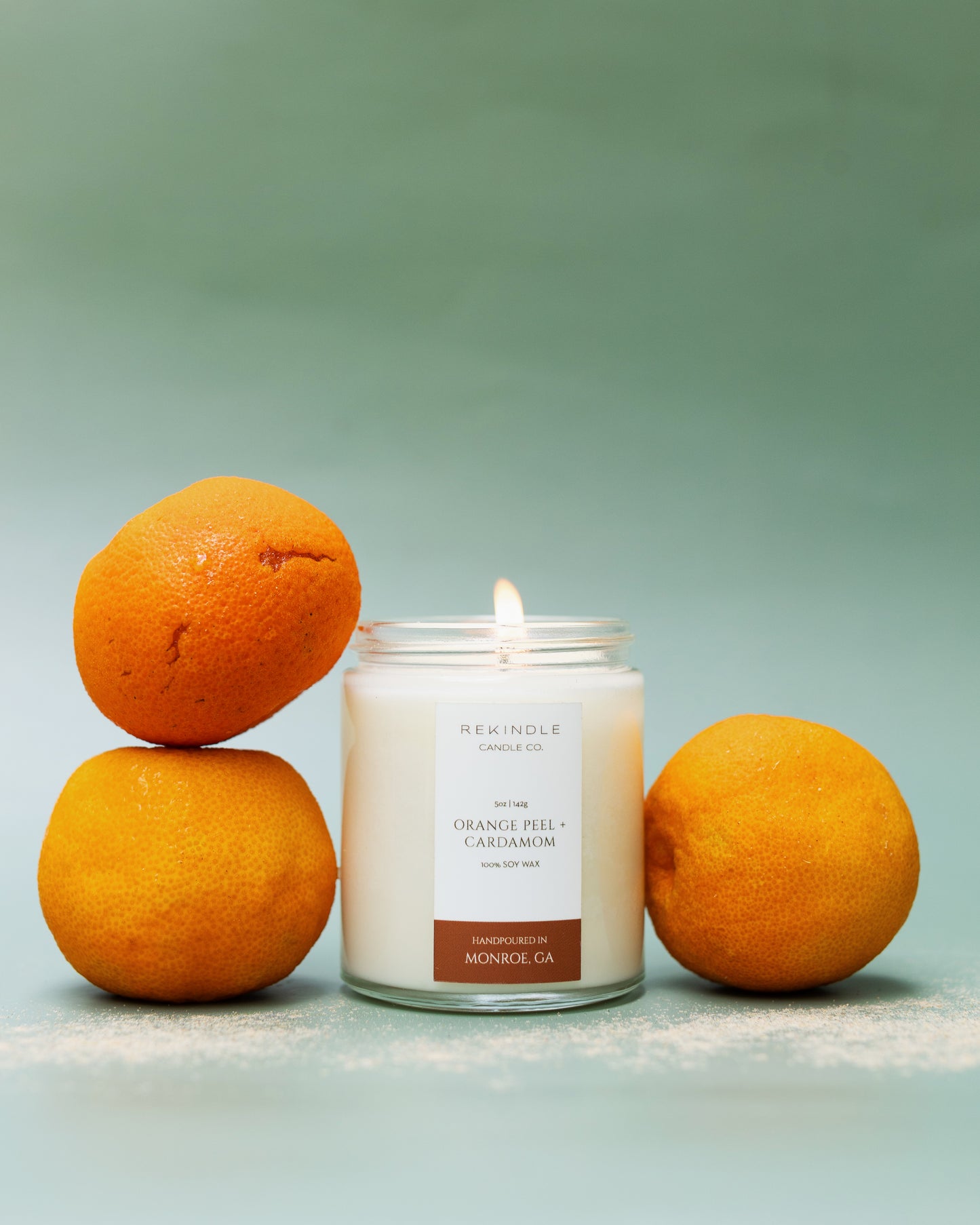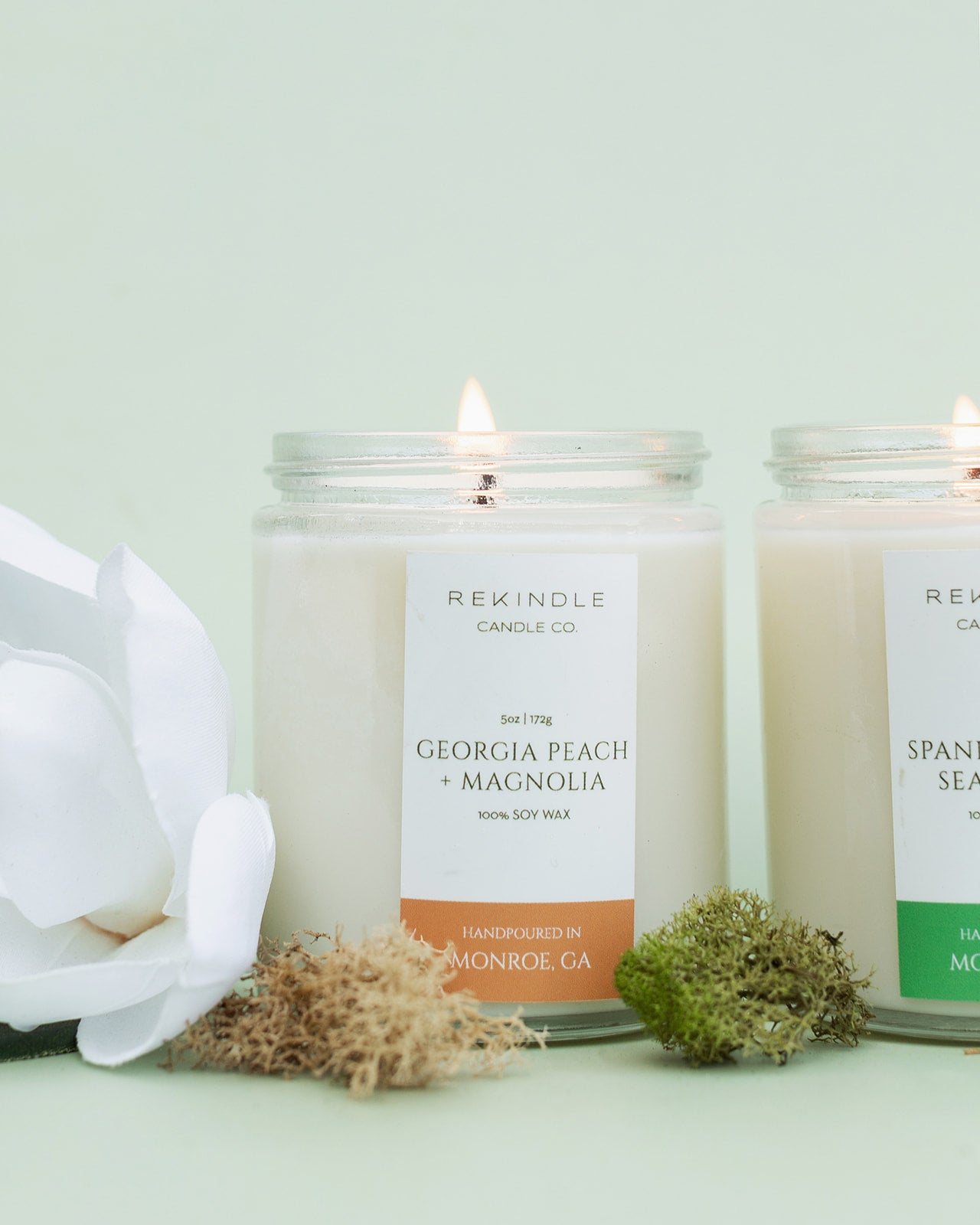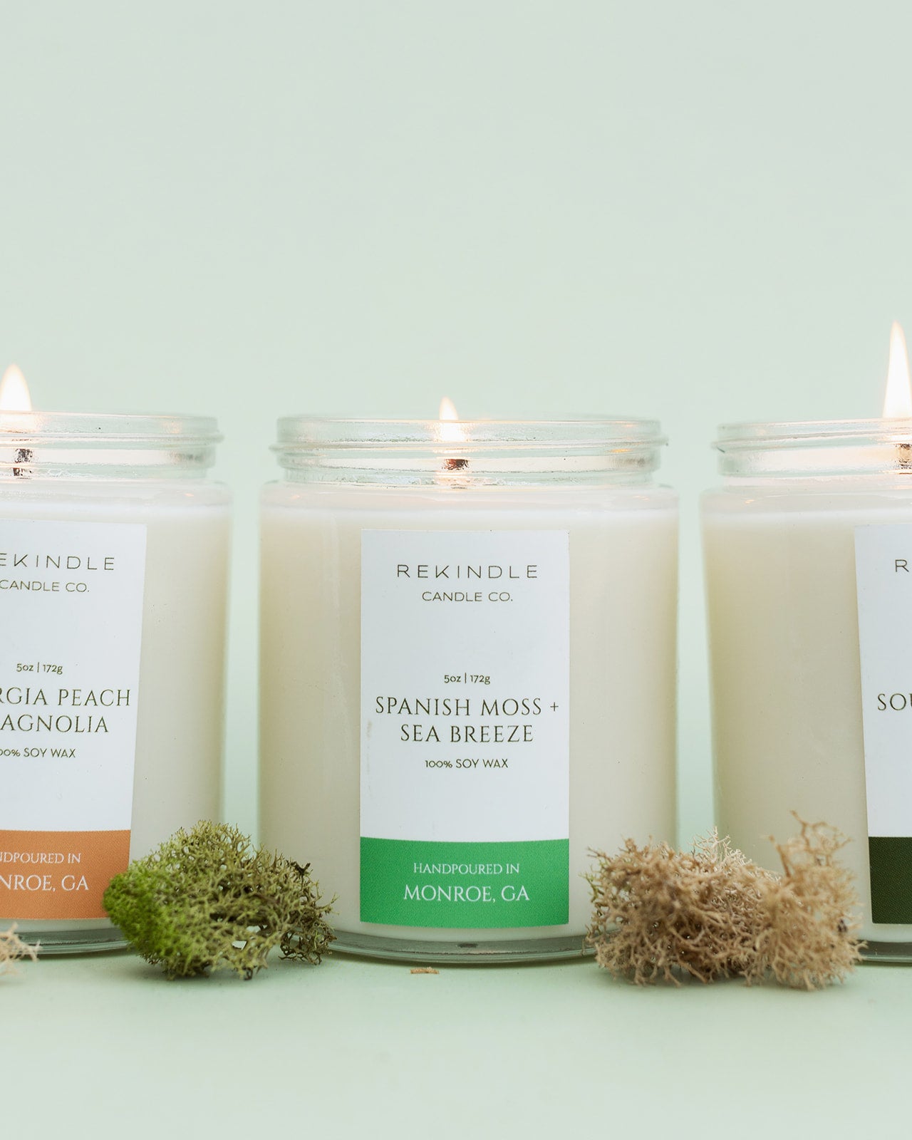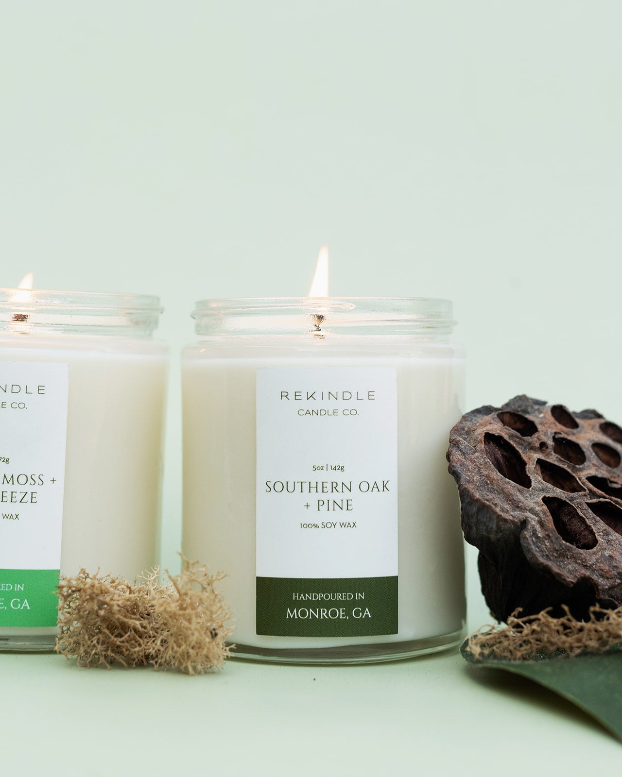 Made with more than 50% recycled glass our glass jars are reusable and recyclable. If you bring back your empty, cleaned out jars to our storefront we'll give you 20% off a new candle of equal value or size. If our brick-and-mortar is out of reach feel free to shoot us an email of your old containers being reused or recycled for 15% off your next online order.